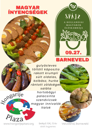 De organisatie van de catering op Hongarije Plaza op 27-09-2025 is in handen van Spajz - Rotterdami Magyar Bolt en Hongaarse Thuis Smaken.
